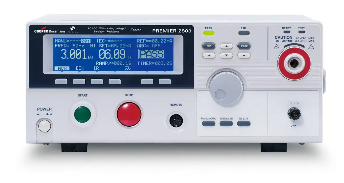Hipot test 5 kV AC & 6 kV DC & insulation 50V to 1000V - 9,5 GOhms